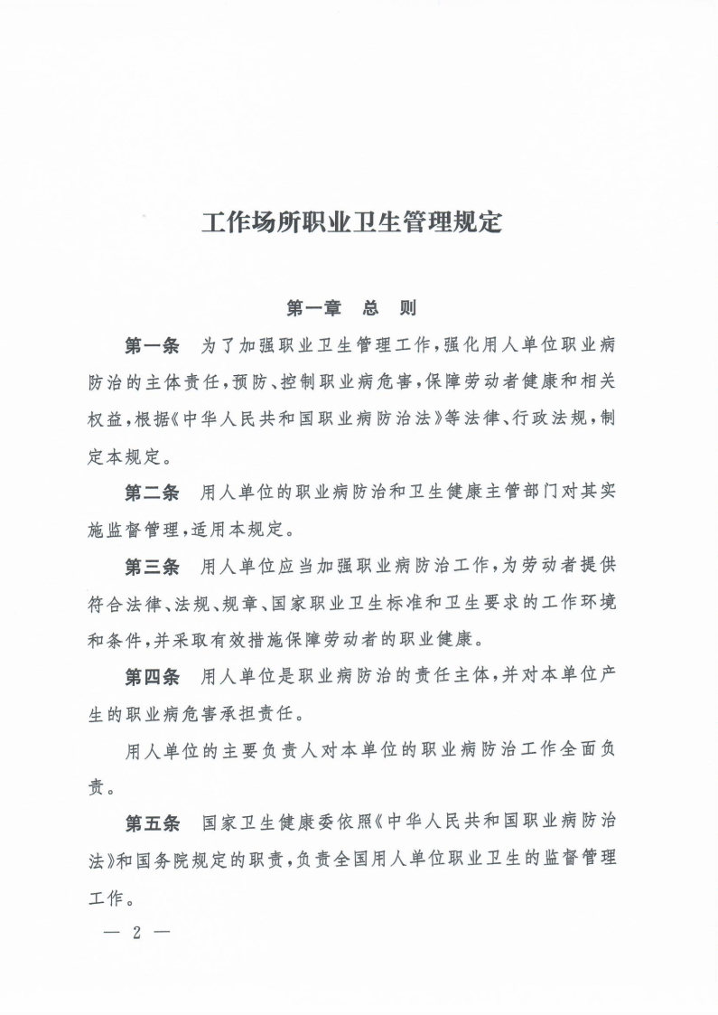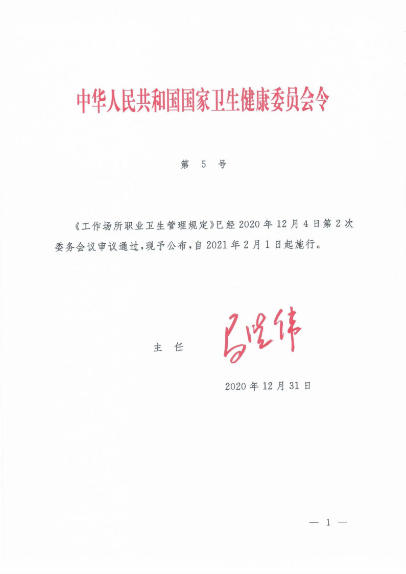 工作場(chǎng)所職業(yè)衛(wèi)生管理規(guī)定(國(guó)家衛(wèi)健委令第5號(hào))