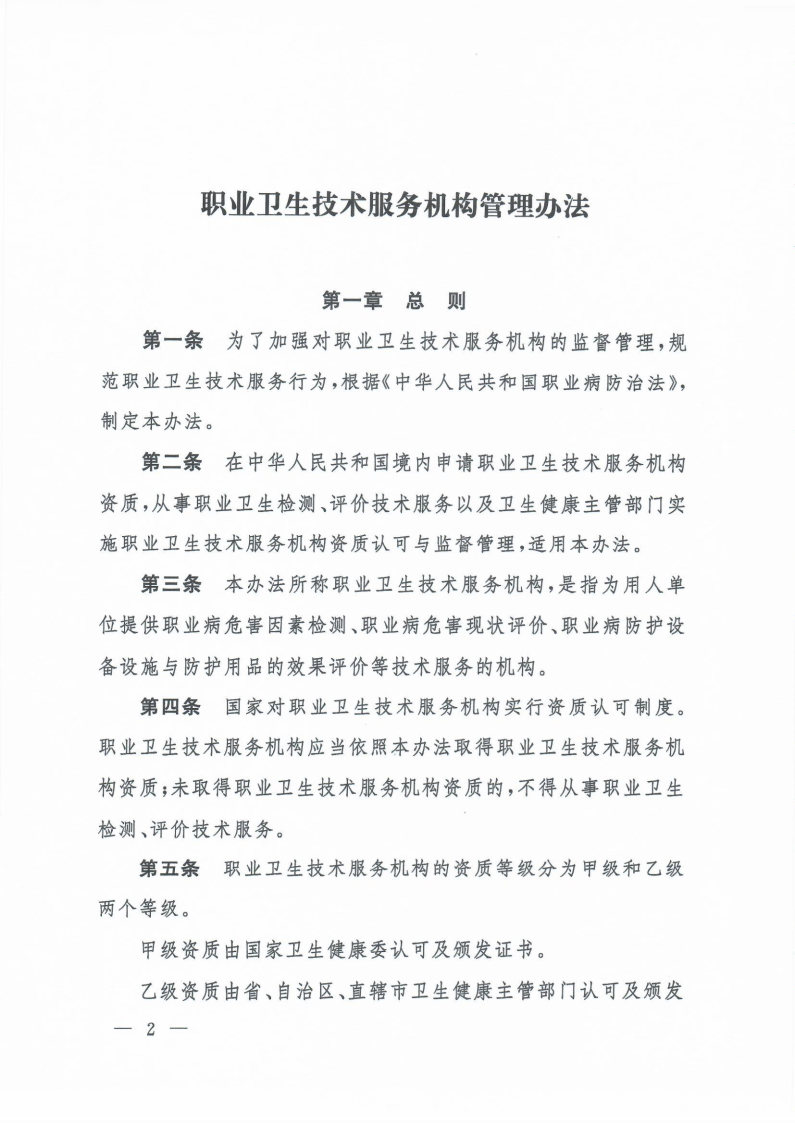 職業(yè)衛(wèi)生技術(shù)服務(wù)機(jī)構(gòu)管理辦法(國家衛(wèi)生健康委令第4號)